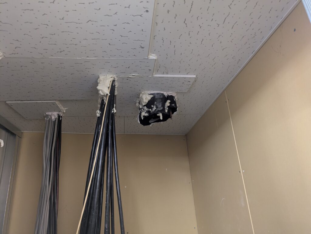 被害を受けたボードを撤去し、その周囲にジプトーンを上張り。