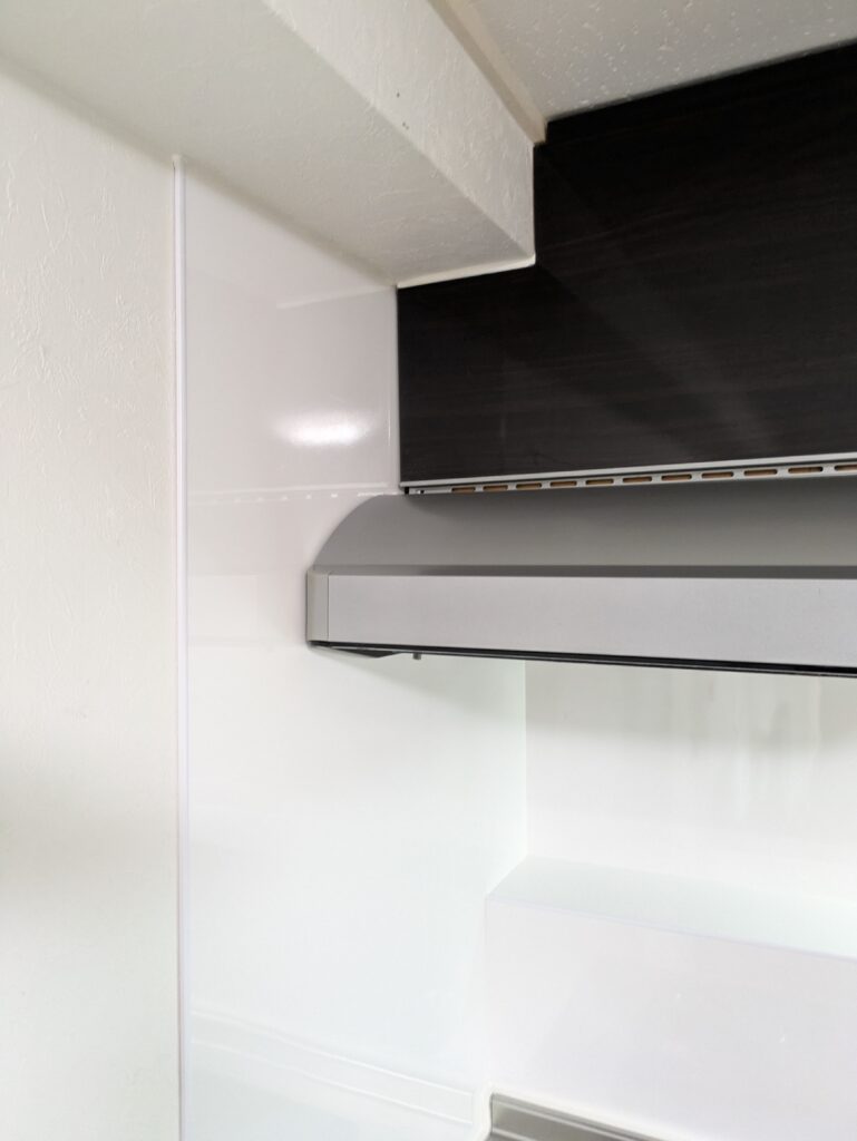 キッチン本体を一度取り外すことで、壁全面に新しいパネルを施工することが可能になります。